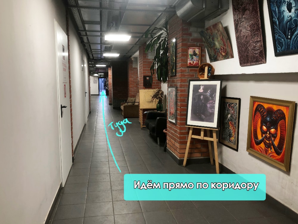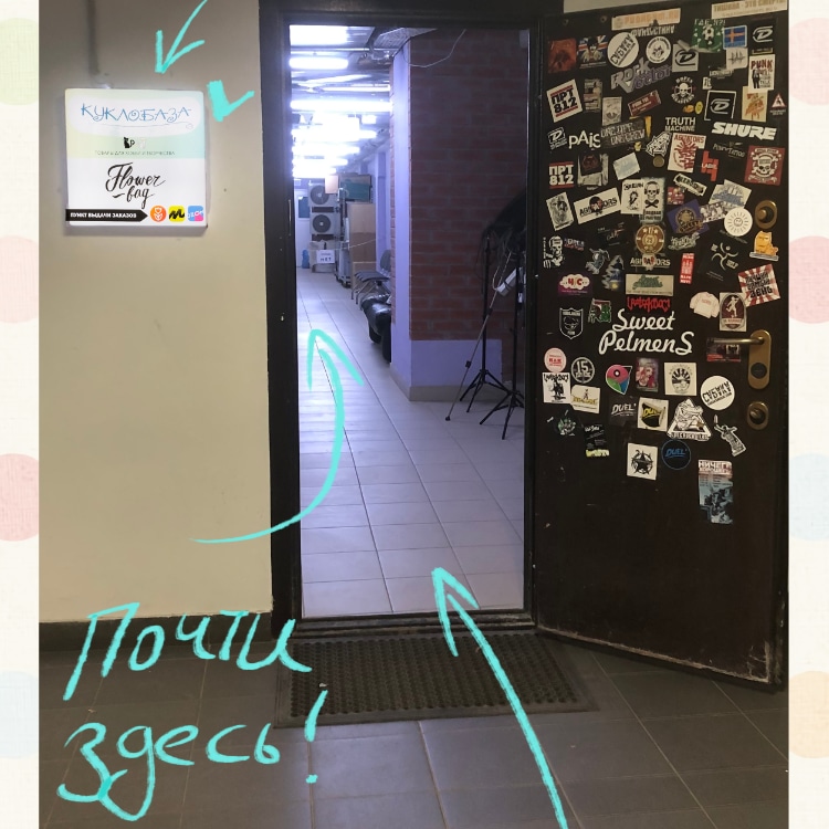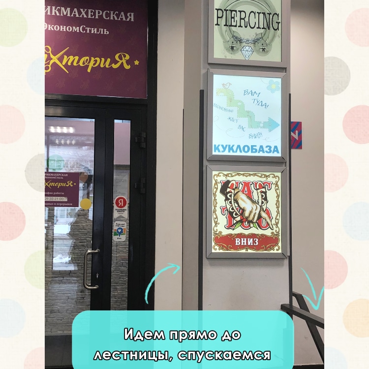 Внутри вам надо спуститься по лестнице вниз и пройти по коридору до вывески "Куклобаза".